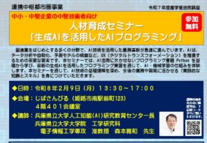 本セミナーでは技術者のためのDX入門、プログラミング言語「Python」によるデータ分析の基礎、AI機械学習入門を学んだ後に演習を行い、DXを推進するためのAI活用技術を身につけていただきます。